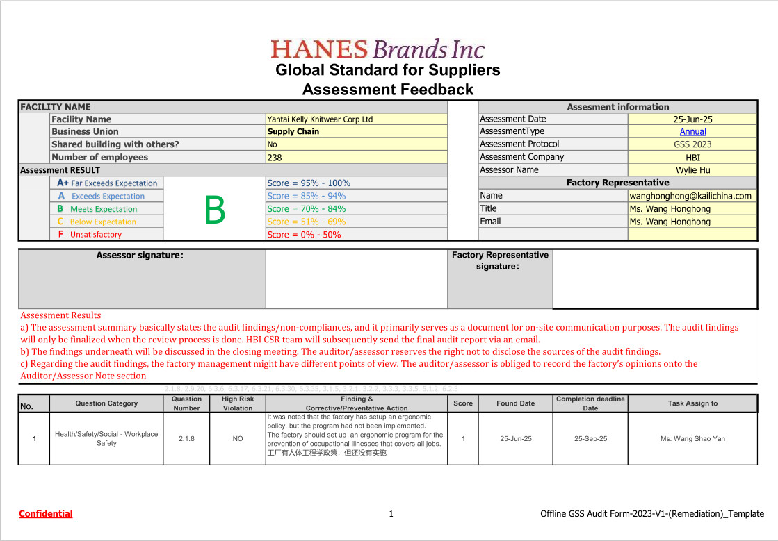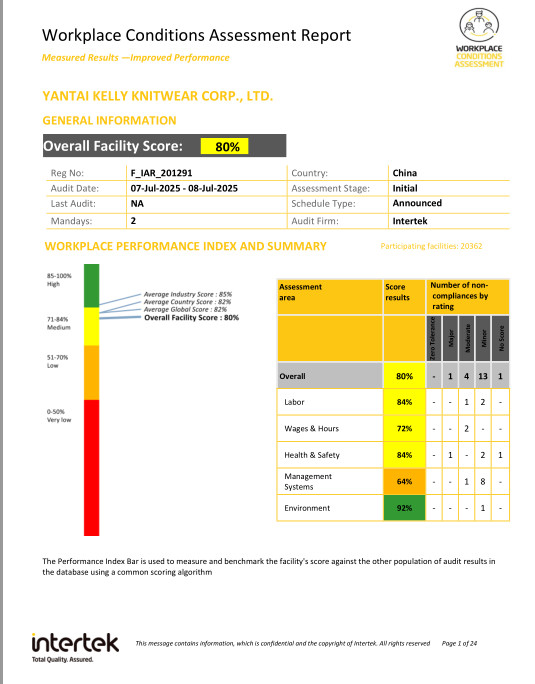 The company consistently regards the establishment and improvement of a sound and strict quality management system as an important prerequisite for enterprise development, and regards standardized production processes and strict quality management as the core of product manufacturing. The company has passed ISO9001: 2008, GB/T19001-2008 quality management system certification; passed the WRAP’s WORLDWIDE RESPONSIBLE APPAREL PRODUCTION qualification certification; and passed production qualification certification of major brands such as the HBI (HANES BRANDS INC), Disney (DISNEY), BANDAI.